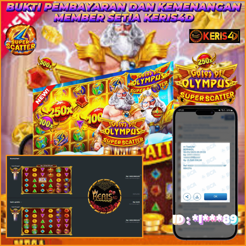KERIS4D dikenal sebagai situs terpercaya yang selalu menghadirkan pengalaman bermain slot online yang aman, fair, dan berlisensi resmi. Di sini, kami tidak hanya sekadar memberikan janji, tapi bukti nyata berupa slip kemenangan yang dapat Anda lihat secara langsung.