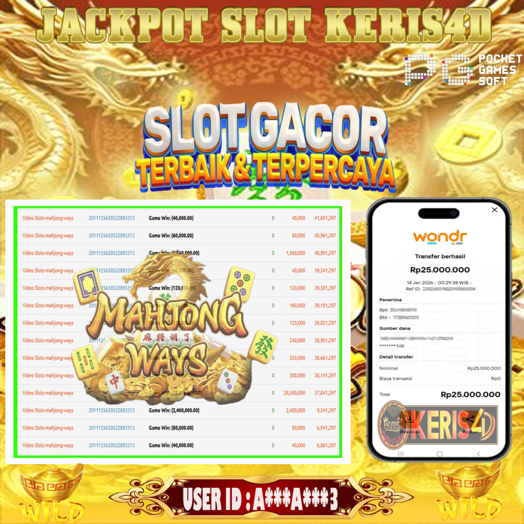 JACKPOT SLOT GACOR MAIN MAHJONG WAYS 14 JANUARI 2026
