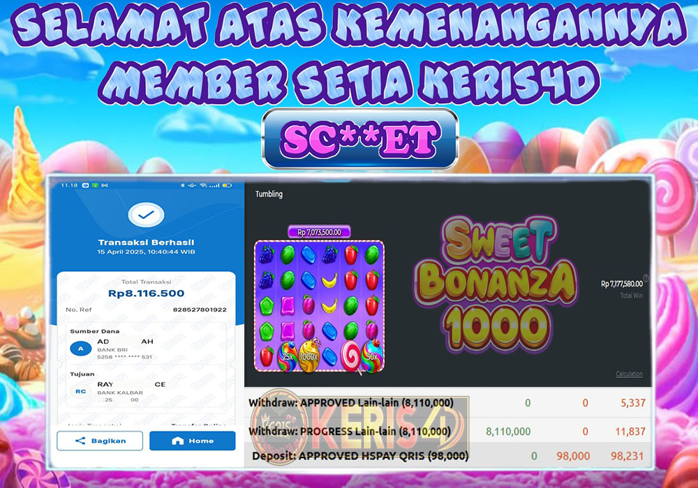 JACKPOT SLOT GACOR MAIN SWEET BONANZA 1000 15 APRIL 2025, Kemenangan Slot, Bukti Kemenangan Slot, Kemenangan Slot PRAGMATIC PLAY, Menang Slot online, Slot Gacor, Situs Aman Terpercaya, WD Berapapun Pasti DI Bayar Tuntas, Maxwin Slot Online.