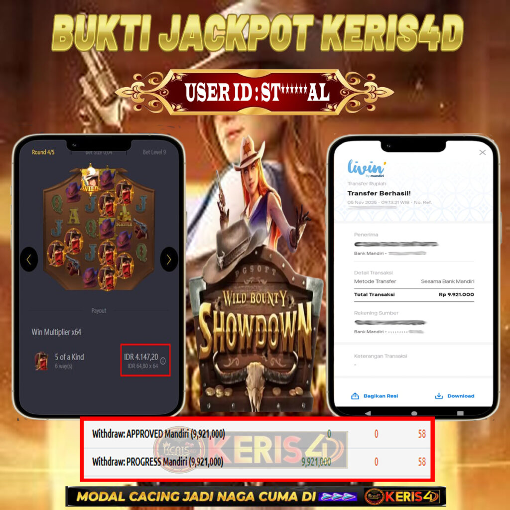 KERIS4D dikenal sebagai situs terpercaya yang selalu menghadirkan pengalaman bermain slot online yang aman, fair, dan berlisensi resmi. Di sini, kami tidak hanya sekadar memberikan janji, tapi bukti nyata berupa slip kemenangan yang dapat Anda lihat secara langsung.